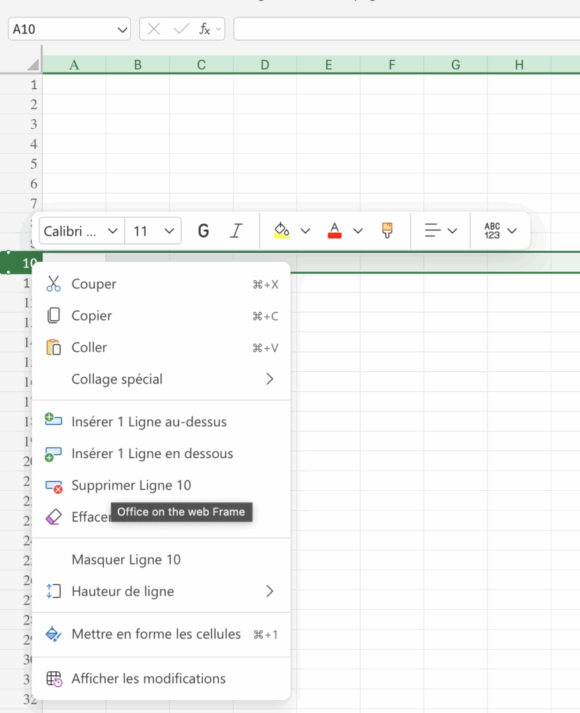 Il suffit de sélectionner le numéro de la ligne située à gauche de la feuille, de faire un clic droit, puis de choisir Supprimer. La ligne disparaît immédiatement et les données se réorganisent.